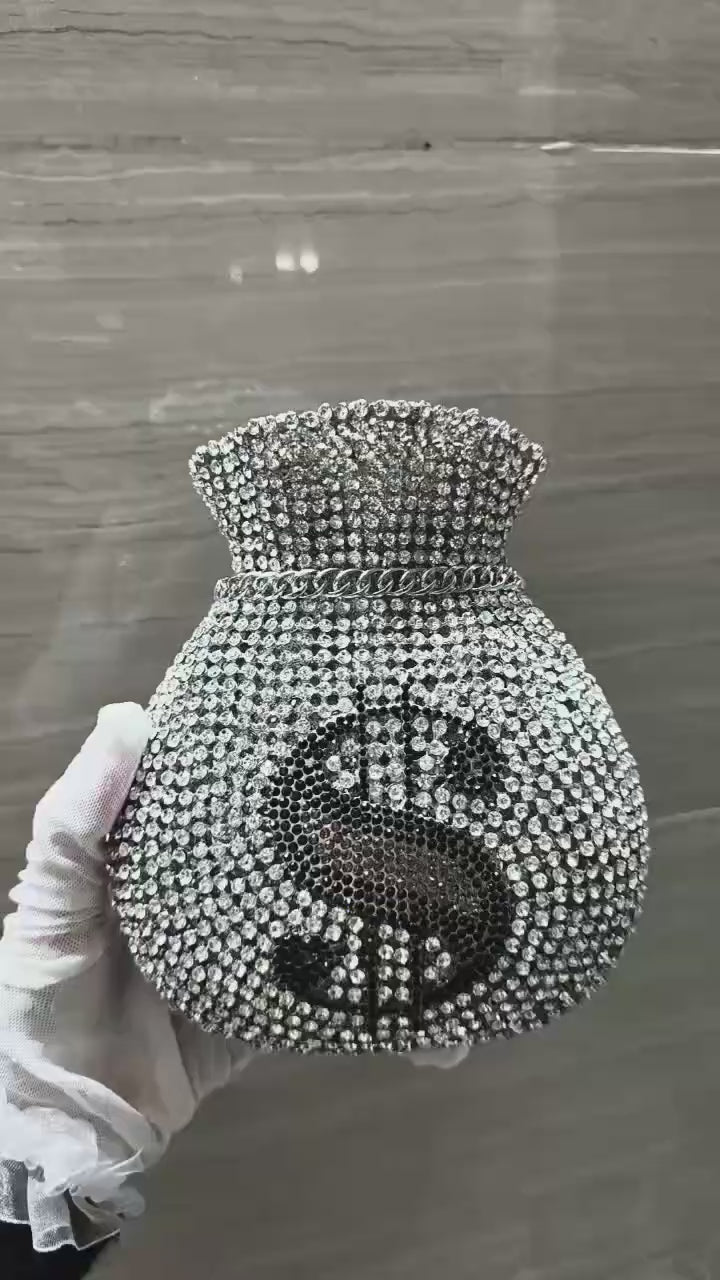 Dollar Crystal Silver Clutch